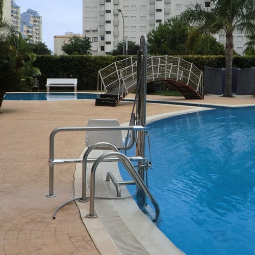 • Silla de piscinas sencilla y económica, adaptable fácilmente a la mayoría de piscinas.